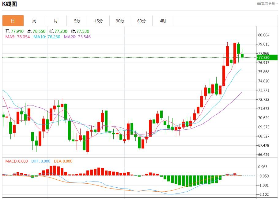 原油市场:截止北京时间21:26,美油下跌,现报77.510,跌幅0.44%。纽市盘前,原油价格向上攀升,试图在图表中出现的看涨通道内恢复看涨趋势,以保持看涨趋势在今天有效和活跃,提醒您我们等待的目标从80.70美元开始,并在超过前一水平后延伸至83.00美元,而实现这些目标需要持有78.25美元以上。