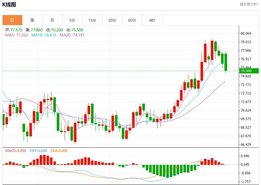 原油市场:截止北京时间21:20,美油下跌,现报75.530,跌幅2.40%。纽市盘前,原油价格恢复其负面交易以突破77.53美元并试图保持在其下方,强化了在今天剩余时间内继续主导修正看跌趋势的预期,为走向75.53美元作为下一个负站铺平了道路,提醒您突破78.25美元将停止看跌趋势,并推动xn--xm-6d1dw86k.com价格试图再次恢复主要看涨趋势。