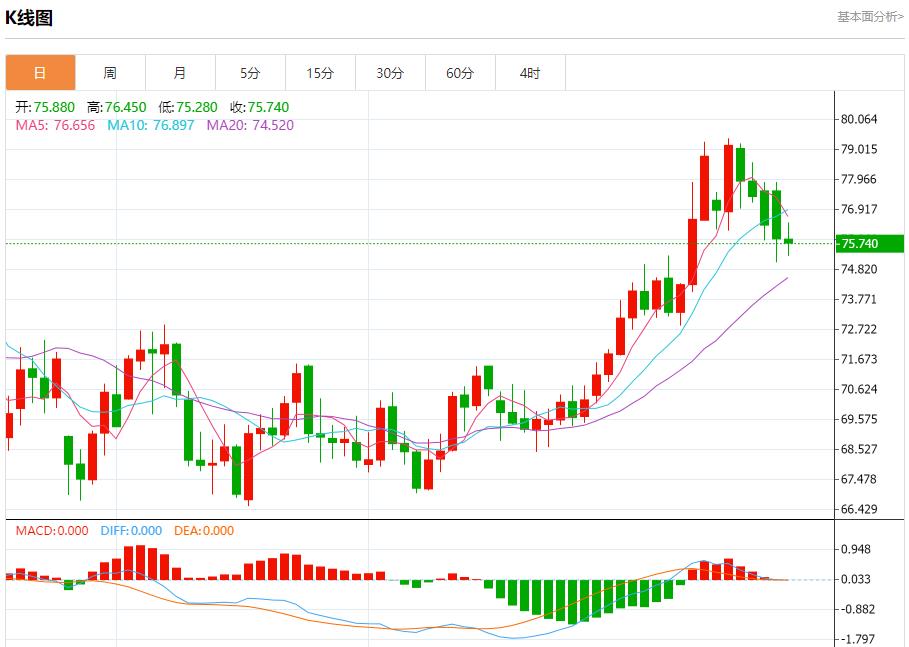 原油市场:截止北京时间21:20,美油下跌,现报75.730,跌幅0.12%。纽市盘前,原油价格显示出冷静的负面交易,以远离头肩顶形态的破碎颈线,提醒你我们的目标从75.53美元开始,并在突破前一水平后延伸至73.90美元,而实现这些目标需要持有低于77.53美元和78.25美元的水平。