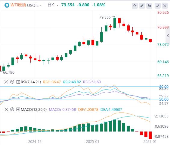 周一亚盘,原油交投73.55附近。因为美国总统唐纳德·特朗普(DonaldTrump)威胁发起贸易战并要求OPEC降低原油价格,此前俄罗斯总统弗拉基米尔·普京(VladimirPutin)重申愿意与特朗普讨论乌克兰问题和油价。上周早些时候,特朗普曾威胁称,如果普京不“达成协议”结束乌克兰的长期战争,将对莫斯科实施更多制裁。