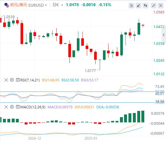 美元指数:截止发稿,美元指数徘徊在107.55附近。美联储(Fed)预计将在1月28-29日的会议上将利率维持在4.25%-4.50%的区间不变。同时,投资者继续认为央行今年将降息不超过50个基点,这一情景得到了强劲的经济基本面和美国经济整体韧性的支持。技术面上,美元指数最近的支撑位位于106.80–107.00区间。跌破106.80水平将推动美元指数走向下一个支撑位105.50–105.70。