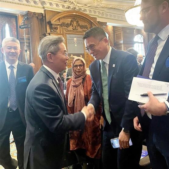 中国驻英国大使郑泽光出席论坛并发表题为《坚持开放合作,促进交流互鉴》的主旨演讲。他强调了国际合作对于人工智能发展的重要性,呼吁共同构建开放包容的市场发展环境。英国48家集团主席杰克·佩里则指出英国应在吸引人工智能投资方面提供互补价值,并积极评价了中国在全球舞台上的角色。