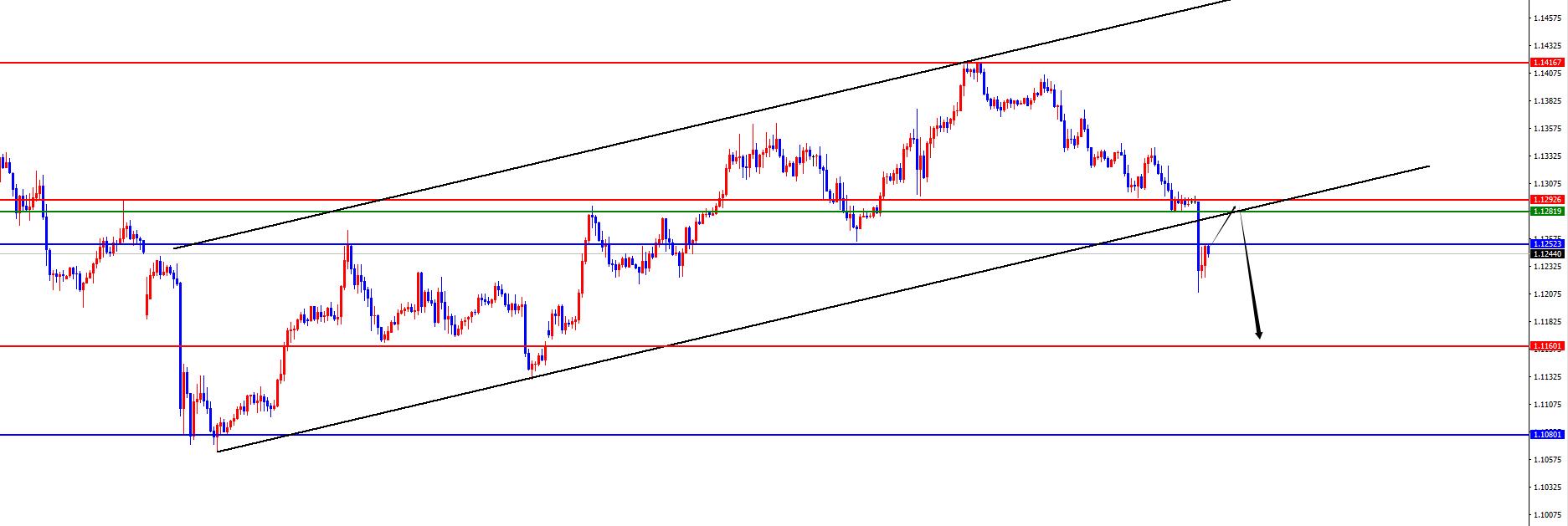 欧美1.1280-90区间空,防守40点,目标1.1130