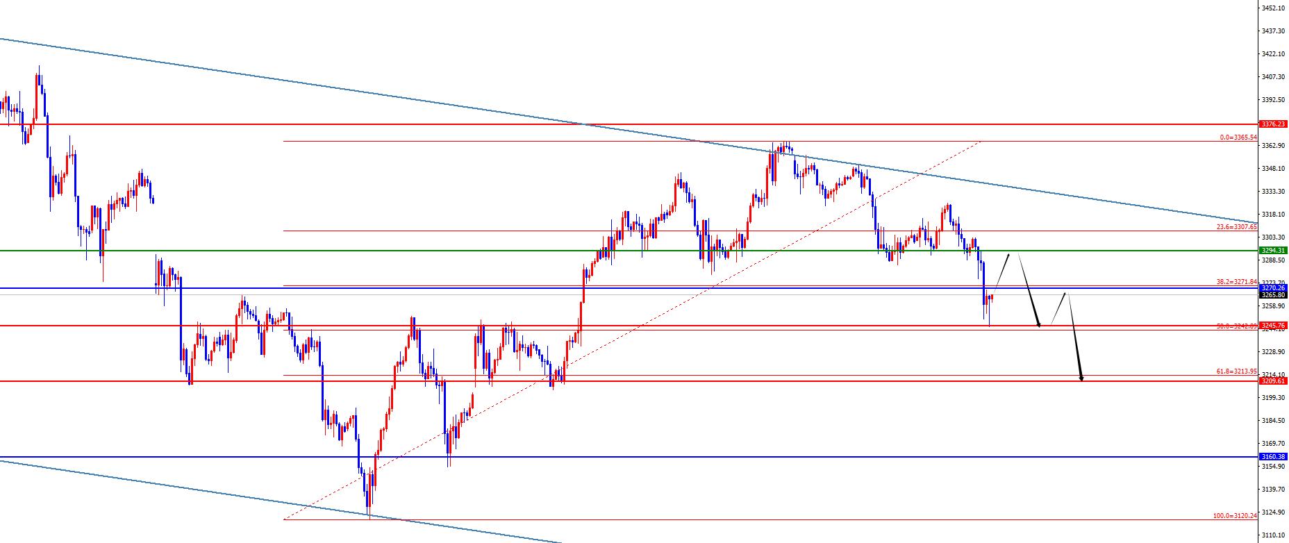 黄金3294-3295区间空,防守10美金,目标3245-3210