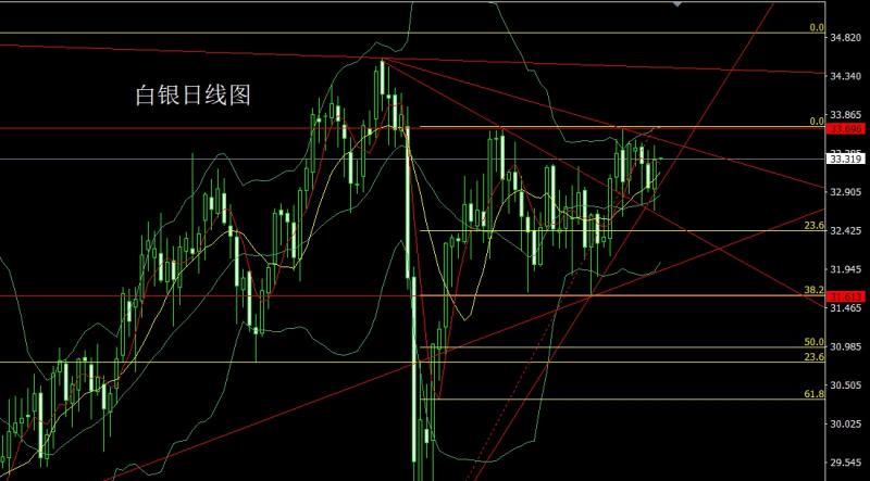 白银市场昨日开盘在32.94的位置后行情先回落,日线最低给到了32.679的位置后行情强势拉升,日线最高触及到了33.491的位置后行情整理,日线最终收线在了33.308的位置后行情以一根下影线稍长于上影线的大阳线收线,而这样的形态收尾后,今日33.1多止损32.9.目标看33.4和33.5.破位看33.7和33.85.