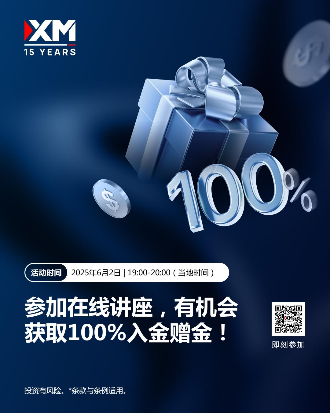 2025年6月2日,报名参加XM【每月交易展望】在线课程,带你掌握6月市场脉动与交易重点。只要报名并在线听课超过45分钟,即有机会获得100%入金赠金的幸运名额,让学习成果立刻转化为实战助力!