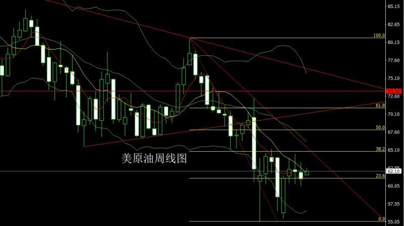 美原油市场上周开盘在61.93的位置后行情先拉升给出62.46的位置后行情震荡回落,给出60.8的位置后行情强势拉升,周线最高触及到了63.36的位置后行情强势回落,周线最低给到了60.03的位置后行情尾盘拉升,周线最终收线在了61.01的位置后行情以一根上影线长于下影线的纺锤心态收线,而这样的形态收尾后,本周先拉升给出62.9空止损63.5,下方目标看62.4和61.9和61.2