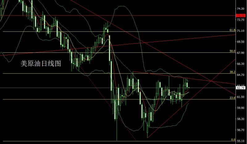 美原油:昨日63.8的空减仓后止损跟进在64,今日63.5空止损64,目标看62.55和62-61.7.