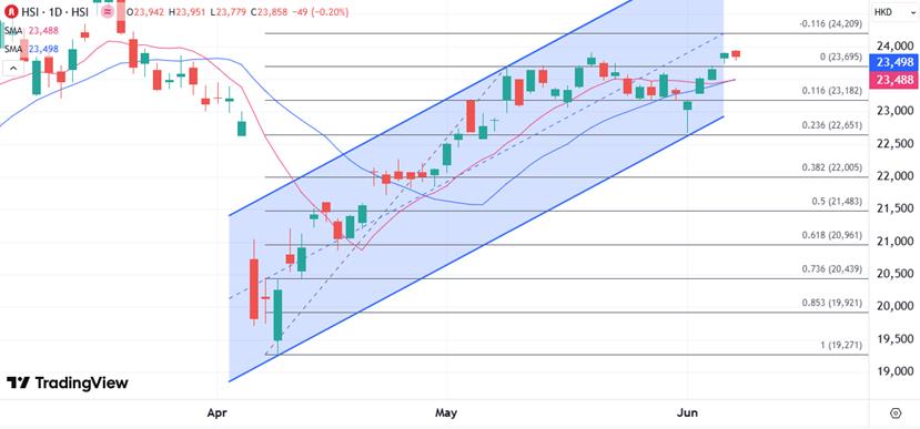XM港股:市场迅速消化贸易局势利好,恒指暂缺乏挑战24000关口动力