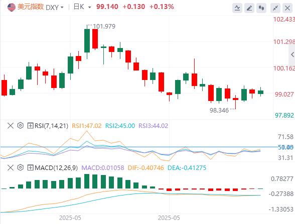 周一,在投资者密切关注中美贸易谈判之际,美元指数震荡走低,盘中一度下破99关口,截至目前,美元报价99.14。