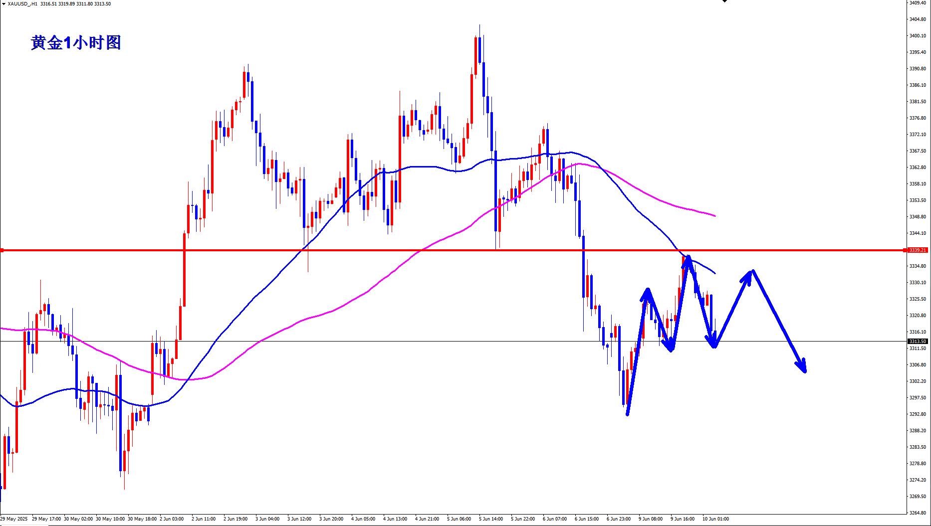 黄金3335空,止损3345,目标3300-3290;