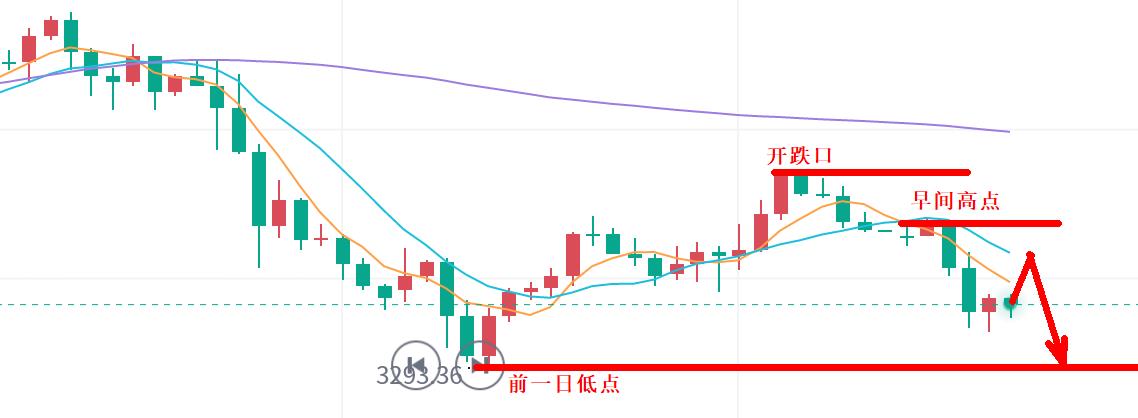 而是让欧盘运行,破了前一日低点3293,反弹也可以空。
