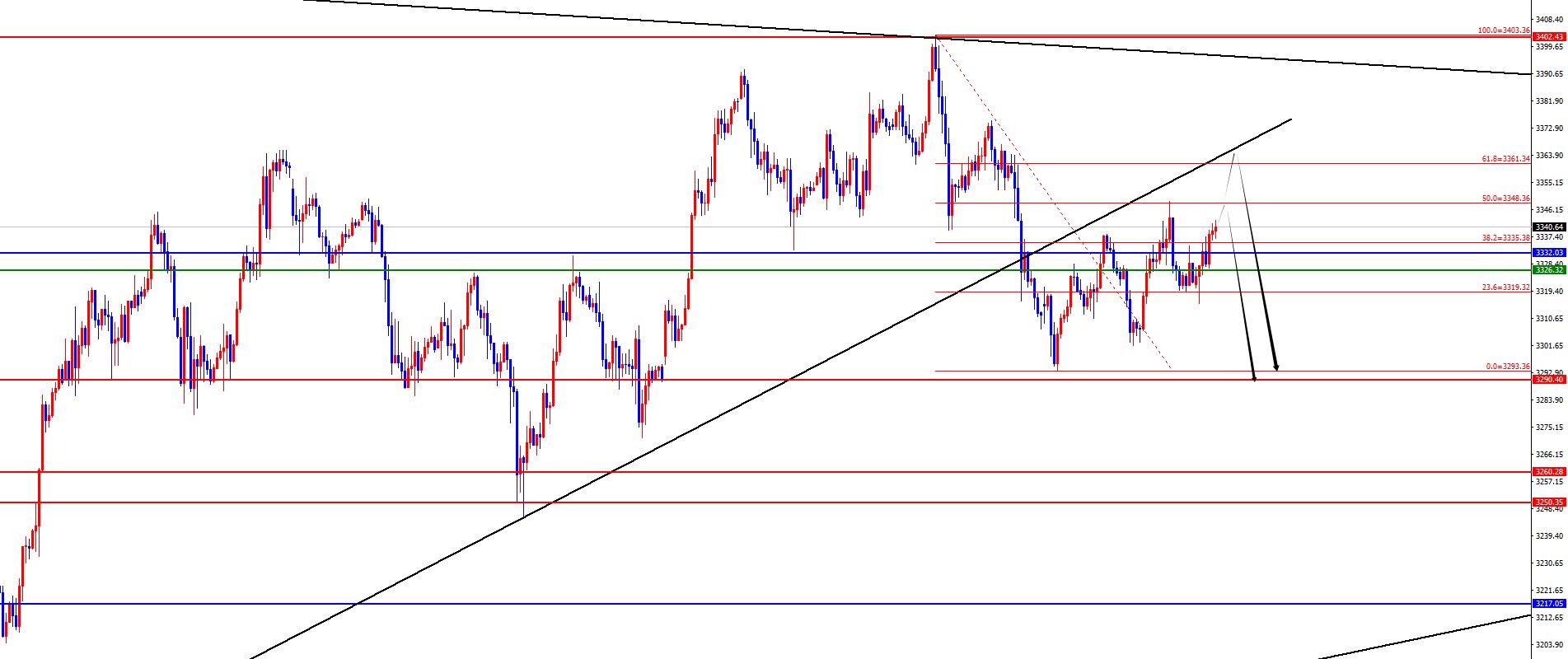 黄金昨高不破之前先看承压,意外上破于3360-3361区间空(保守者关注3360区域再布局)