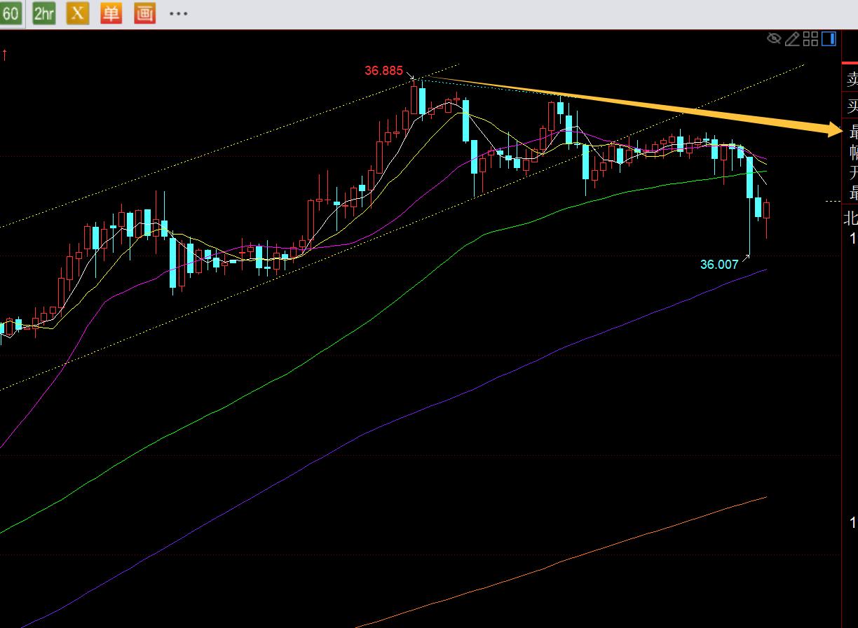 第二,白银方面:日内15分钟小周期收敛三角整理向上突破之后,36.6继续跟随看涨,可惜只给到36.8,美盘陷入震荡,当失守这几日趋势支撑线之后,就建议提前调仓,就有短线再度整理或调整的风险;
