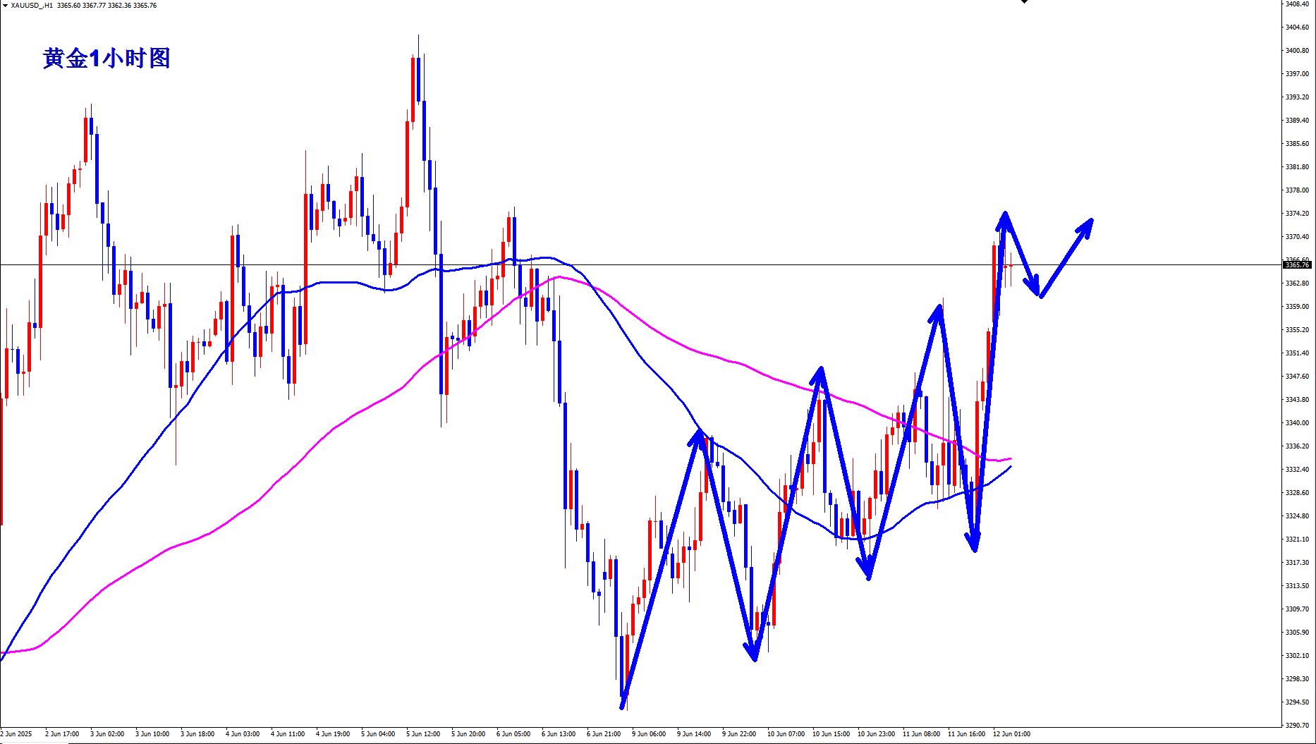 黄金昨晚后半夜探底3320一线之后,地缘避险让黄金深V强势上涨,那么这次的持续性强,所以黄金多头开始发力,多头有望更上一层楼,既然现在多头更胜一筹,那么早盘顺势继续多,黄金早盘现价3365直接多!