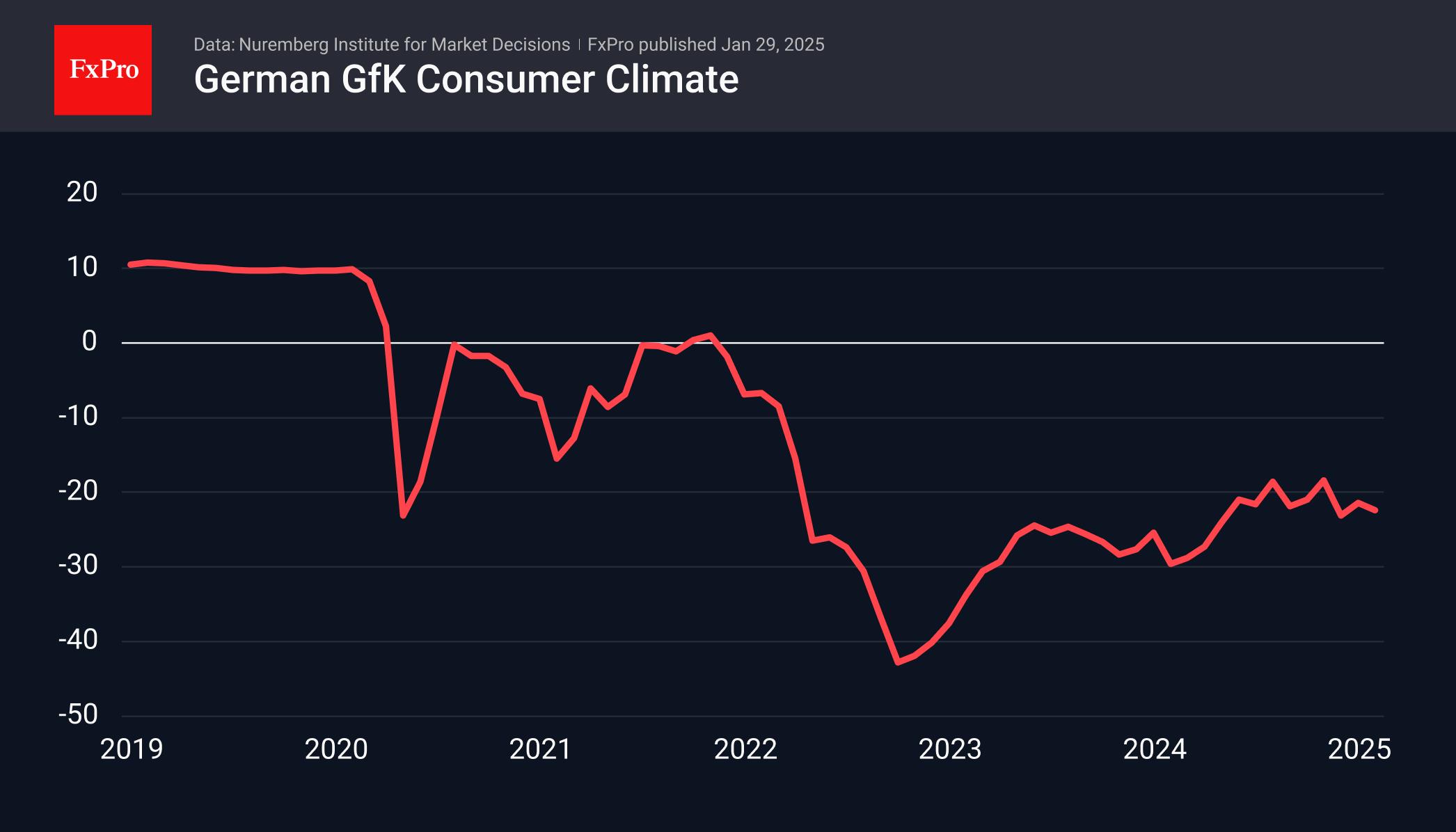 德国消费者1月份的气候指数下降,影响了欧元区最大的经济体,并对欧元施加了压力。截至2月,该指数下跌1个点至-22.4,自2021年底以来一直保持严重负面,自去年中期以来没有出现上升趋势。该报告强调了收入预期和购买意图的下降,这可能与通胀的增加有关。