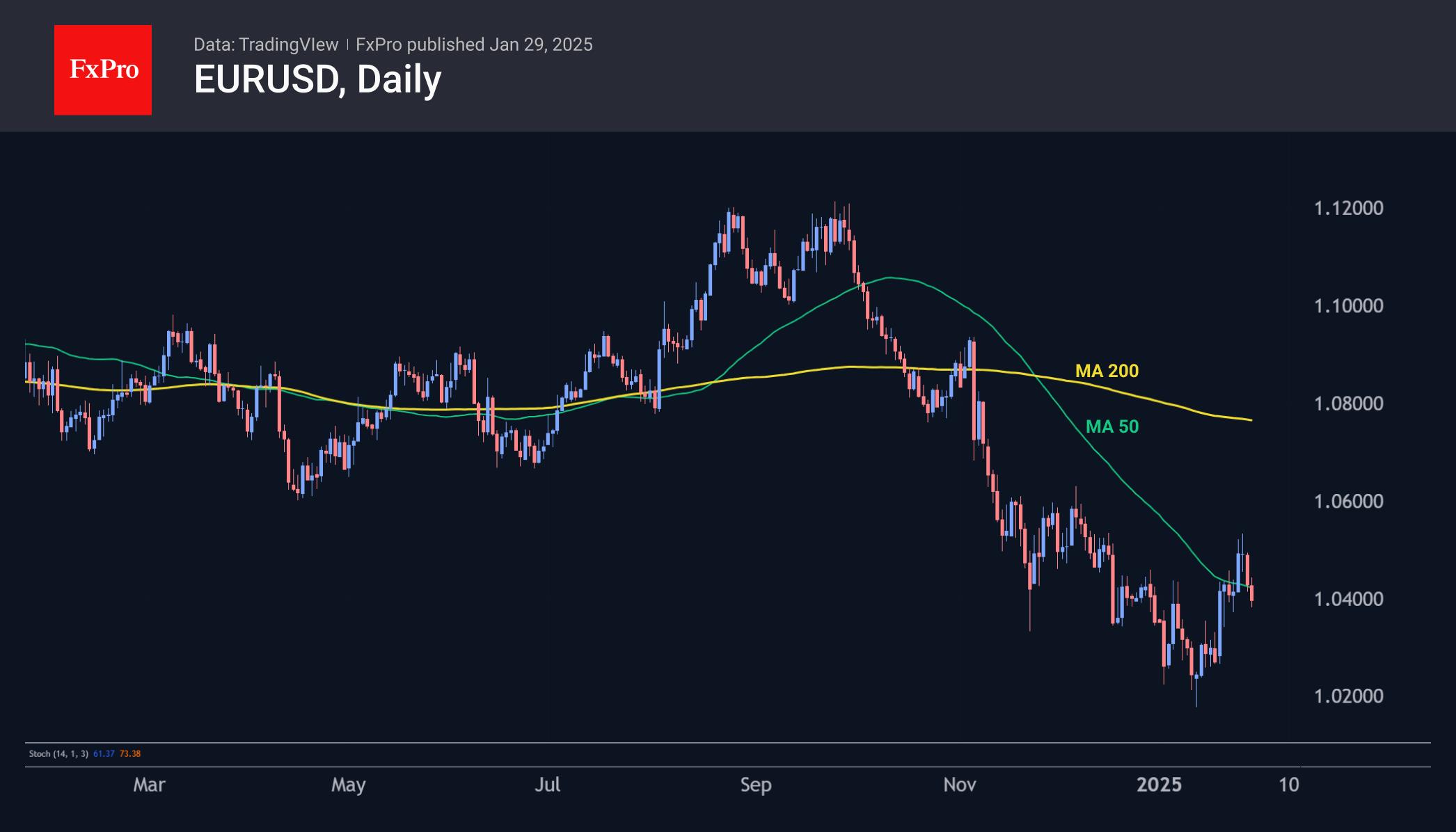 这些市场预期表明,受技术因素的影响,欧元兑美元和英镑可能会下跌。EURUSD从1月13日到27日的反弹似乎是自10月以来的下跌之后的技术反弹。经济复苏在超过50日移动均线和1.05水平后失去了势头。EURUSD可能在1.05水平下盘整,这可能导致下跌低于平价。