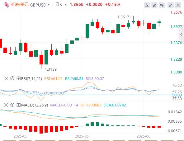 英镑/美元在1.3600附近再次面临阻力后回落至1.3550。英镑在4月份受到英国经济收缩幅度大于预期的打击。