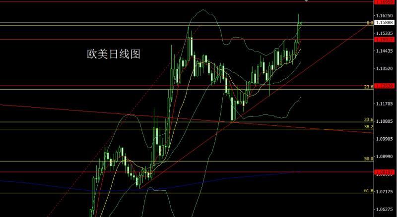 欧美市场昨日开盘在1.14866的位置后行情先回落给出1.14814的位置后行情强势拉升,日线最高触及到了1.16320的位置后行情整理,日线最终收线在了1.15842的位置后行情以一根上影线很长的大阳线收线,而这样的形态收尾后,今日1.15400多止损1.15200,目标看1.16000和1.16300.破位看1.16500和1.16700.