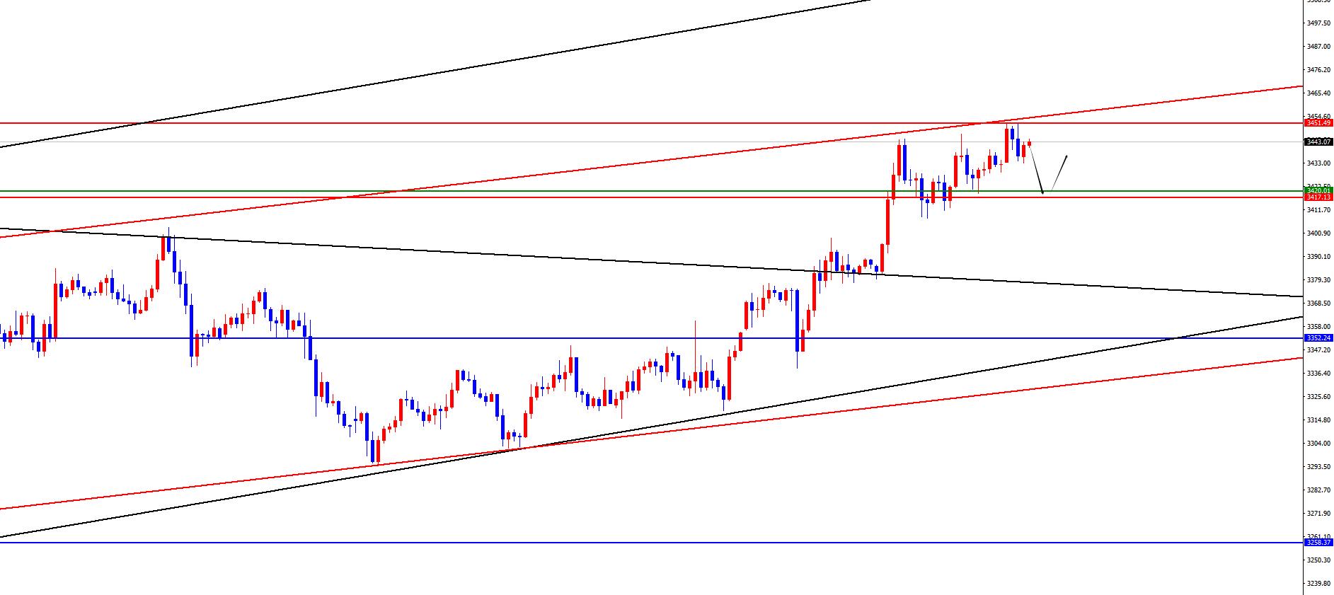 黄金3417-3420区间多,防守3407,目标3450-3485
