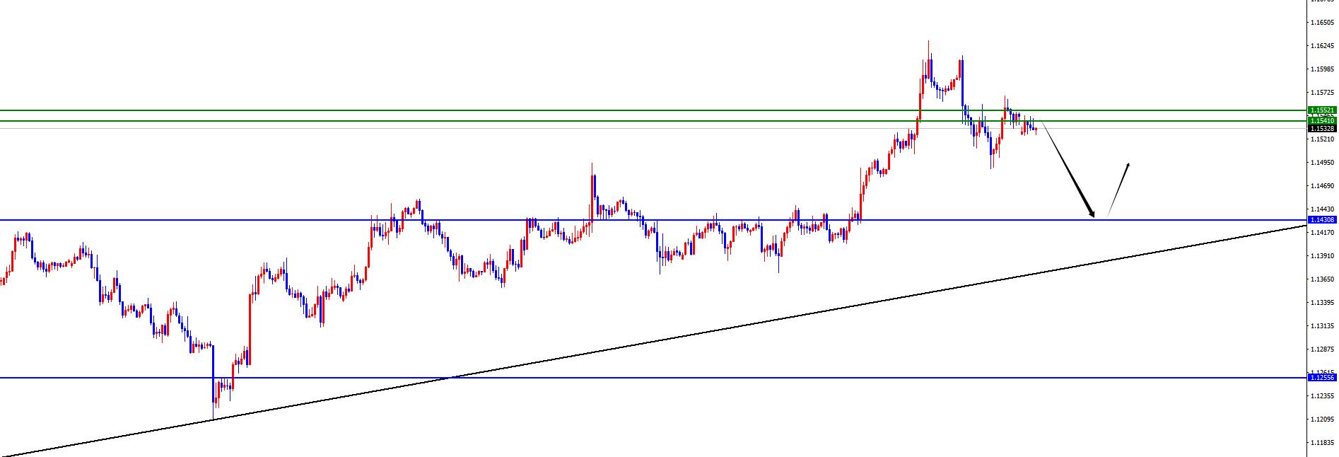 欧美1.1540-50区间空,防守40点,目标1.1490-1.1435