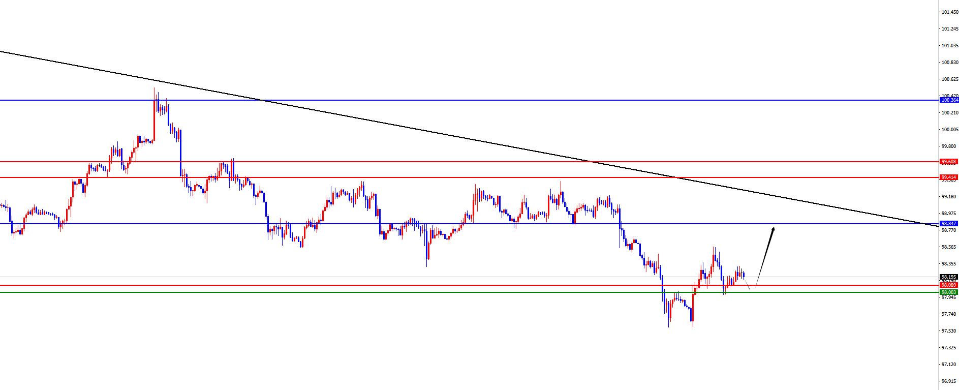 美指98.00-98.10区间多,防守5美金,目标98.50-98.85