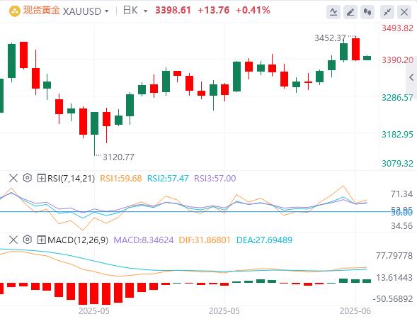 周二亚盘,黄金交投3398.61附近。现货黄金早盘涨破3400美元大关。早前在特朗普呼吁所有人撤离伊朗首都德黑兰几分钟后,德黑兰发生多起爆炸事件,防空系统启动拦截目标。本周,根据美联储的决定,美国将发布美联储区域银行披露的零售销售、住房和商业活动数据。尽管下跌,但由于中国人民银行(PBoC)等主要央行可能会继续疯狂购买,预计黄金将小幅走高。