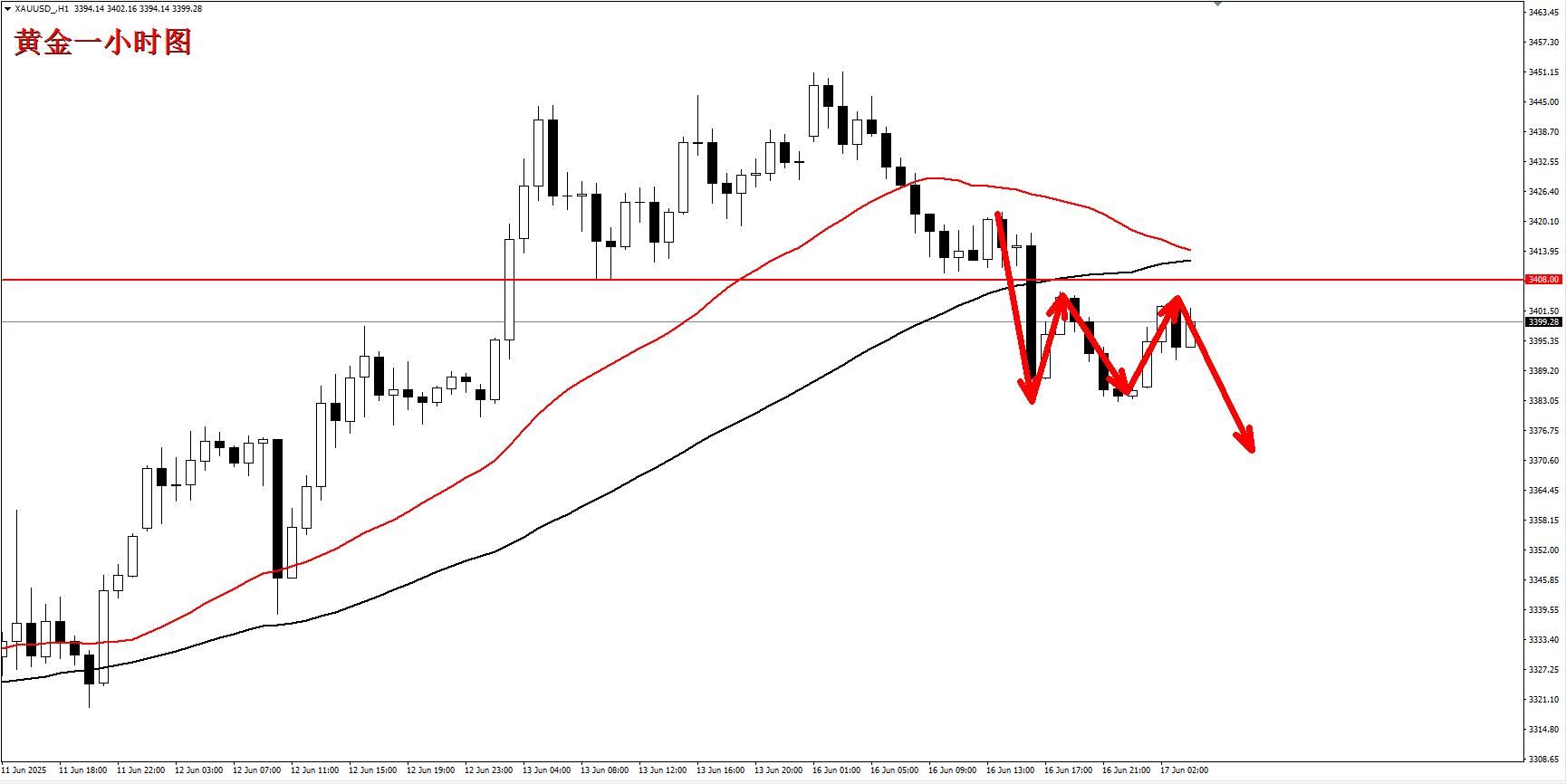 黄金3408空,止损3418,目标3380