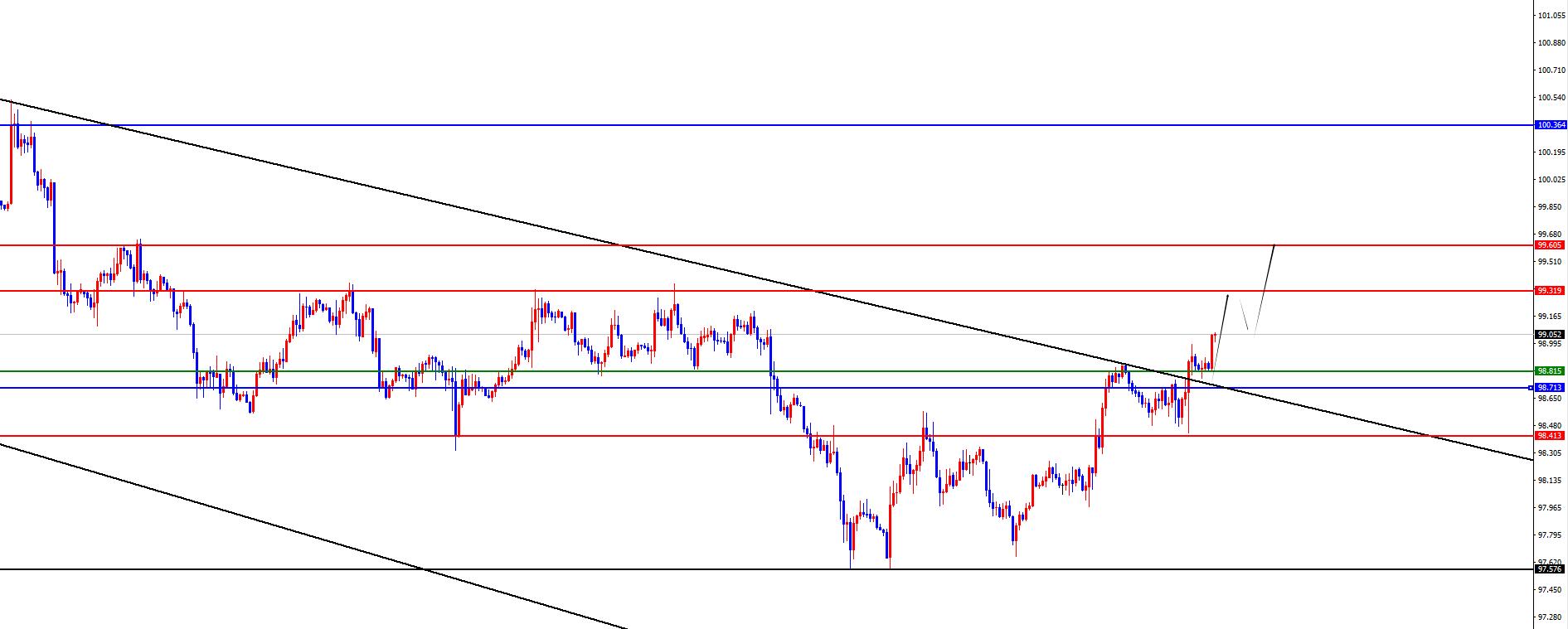 美指98.70-80区间多,防守5美金,目标99.30-99.60