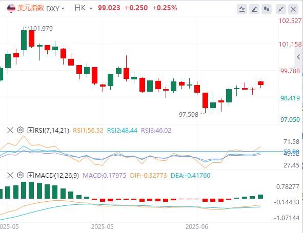 上周五,由于中东战事的不确定性及其可能对全球经济造成的影响,美元指数创逾一个月最大周线涨幅,日线持平,截至目前,美元报价99.02。