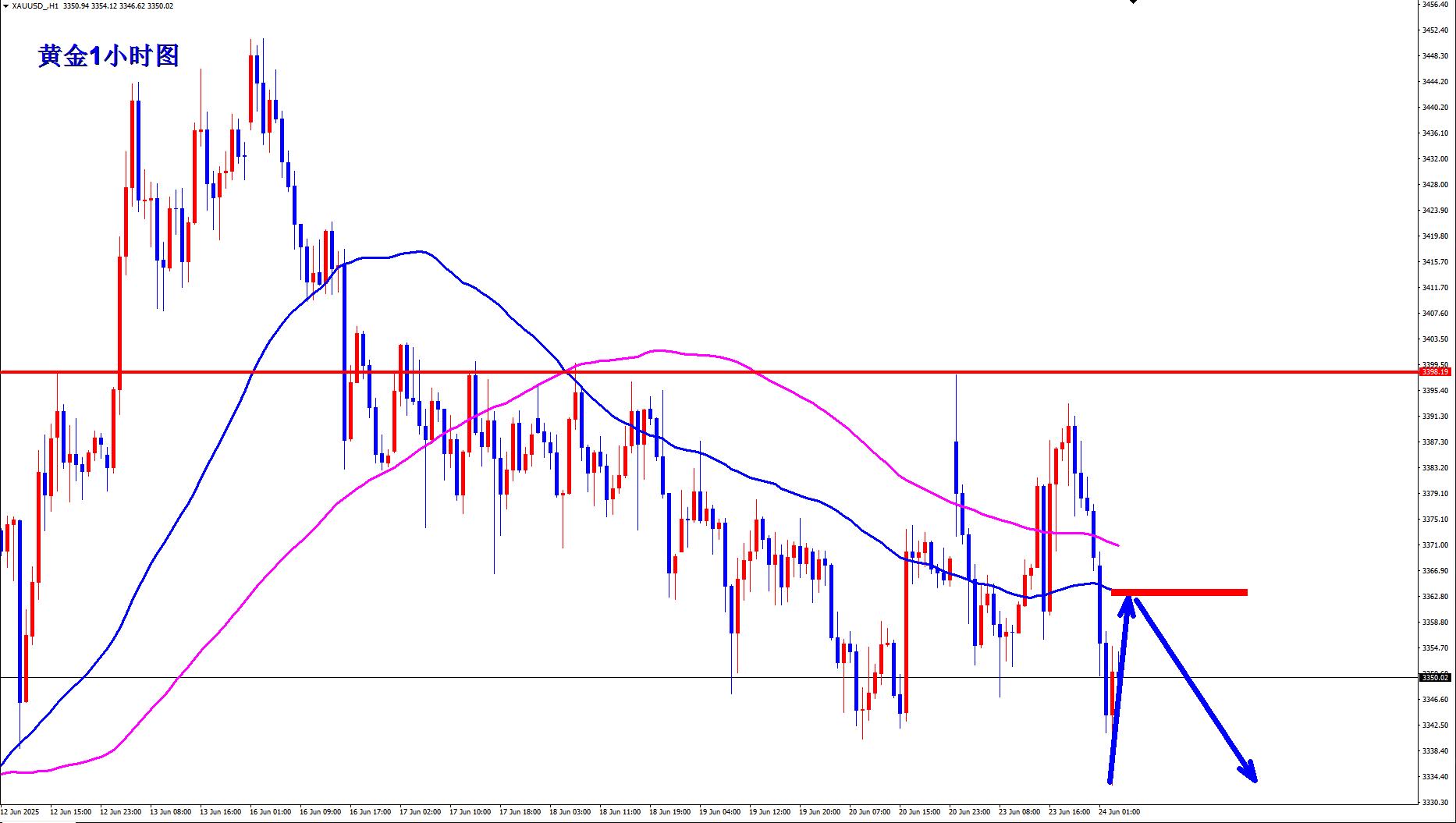 【XM外汇市场评论】:黄金隔夜3388空如期大跌,早盘反弹继续空!