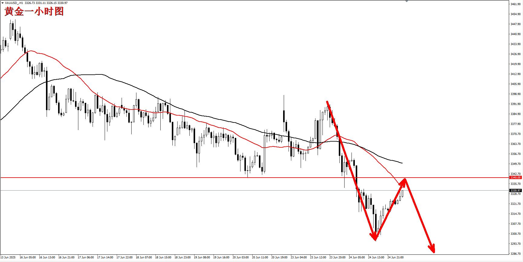 市场还是偏弱,上方关键的分水岭就是3340的顶底转换位,如果黄金反弹临近3340附近动能减弱或者出现顶部形态,那我们将会毫不犹豫的继续做空!那么我们下一级别的目标将会看向3280一线甚至更低,但如果你对这种行情把握不好,可以加入我的粉丝团,有变动团里会及时通知!????