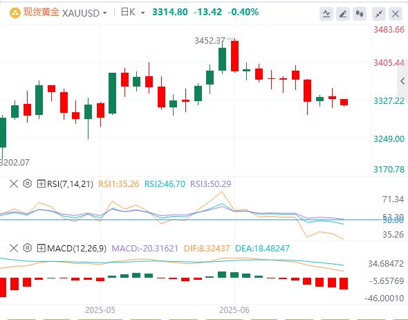 周五亚盘,黄金交投3314.80附近。尽管美元接近三年半低点,美国国债收益率暴跌,但黄金仍在努力反弹。??