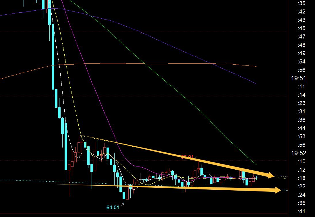 原油方面:这两天原油幅度都很小,底部进行收敛三角,末端运行,随时可能会突破;关注图中两黄色线的有效破位情况,由于短周期macd的底背离,倾向于向上展开一波超跌反弹修正,再借助日线通道反压点71之下进行冲高回落;因此,以64.5日内低点作为风水岭,65及上先看反弹;