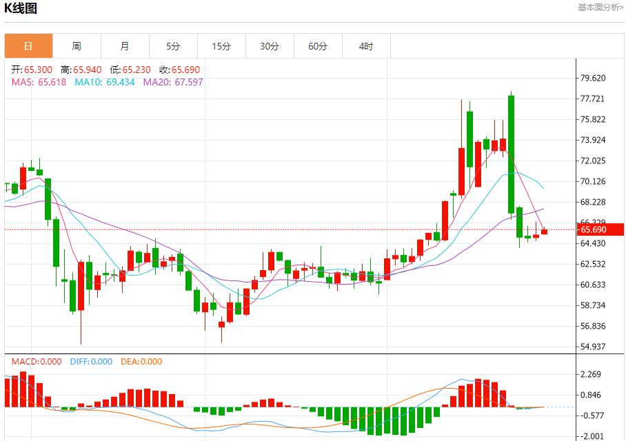 原油市场:截止北京时间20:23,美油上涨,现报65.680,涨幅0.67%。纽市盘前,(原油)在最后一个盘中交易中继续在有限的横盘整理区间交易中波动,表明形成潜在的负面技术形态,完成急剧的看跌修正趋势(看跌旗形),这为在之前的波动后恢复下跌铺平了道路。