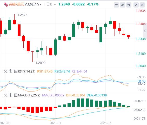 英镑/美元周一连续第三个交易日下跌。该货币对努力恢复牵引力,并在1.2350附近的负值区域交易。