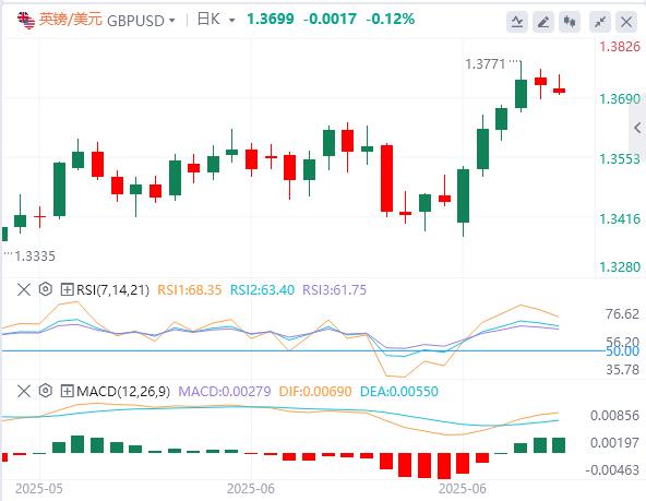 加拿大财政部周一早些时候在一份声明中表示,他们将取消数字服务税,以推进与美国更广泛的贸易谈判,并指出加拿大总理马克·卡尼和唐纳德·特朗普总统同意,各方将在7月21日之前恢复谈判以达成协议。美元/加元在本周初小幅走低,交投于1.3660附近。