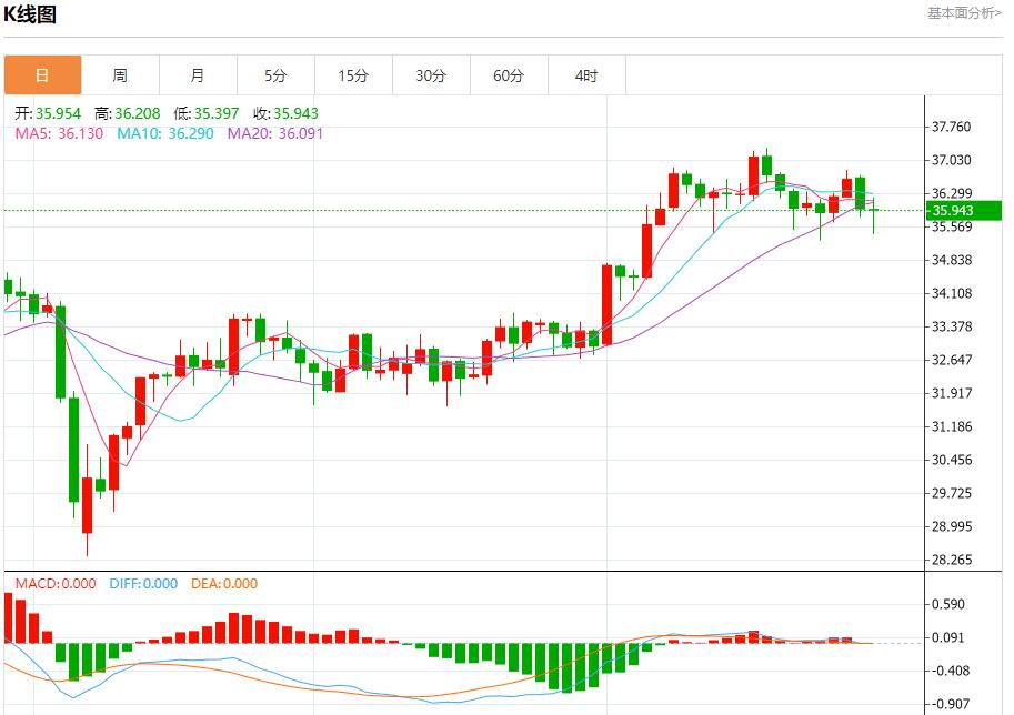 现货白银:截止北京时间20:23,现货白银下跌,现报35.949,跌幅0.03%。纽市盘前,(白银)的价格在最后一个盘中交易中下跌,因为它被限制在低于EMA50的交易所带来的负面压力和短期的小幅看涨趋势线之间,这提供了积极的动力,随着(RSI)积极信号的出现。