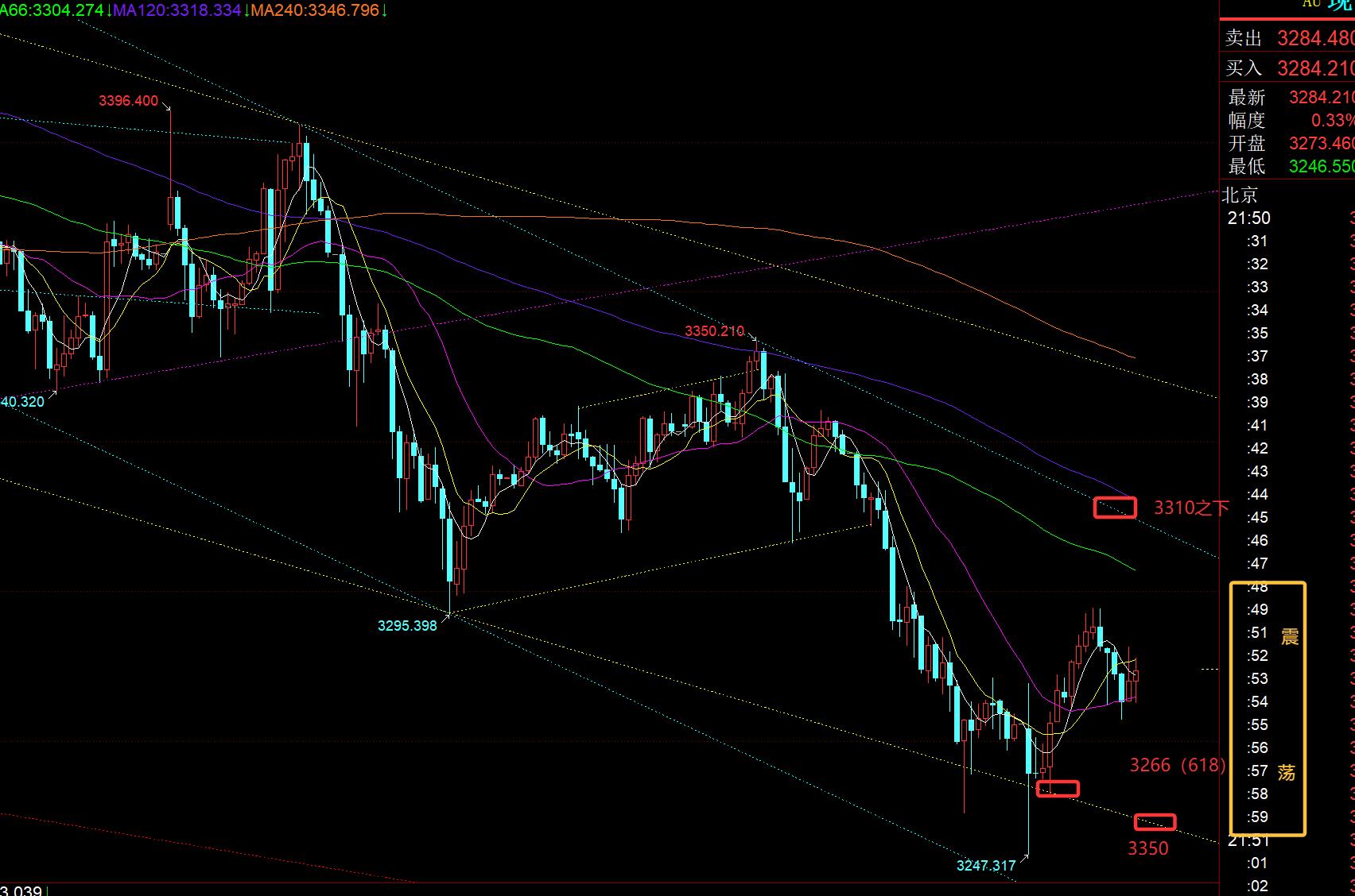 第一,黄金方面:今日早间先小幅高开至3280-82,这个短期阻力刚好是周视频提及的,上周五凌晨高点,触及承压不上则看压制,下滑关注3247附近,3120-3452的618分割位置,也是上周研报早提前强调的炒底点,周视频又讲了一次,触及之后,完美探底拉升,一路拉升至3297一线,刚好50米;好神奇,因为上周3300提示炒底,也是反弹了50米至3350,这次又是50米,然后欧盘冲高回落了,并未延续亚盘拉升,今晚也就容易震荡了;