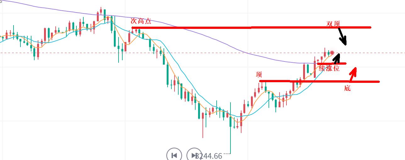 2,早间回撤的不大,没有给到进场机会,但价格却出现延续破高,形成延续上升,这强调一点,为什么说早间没给到多的位置?
