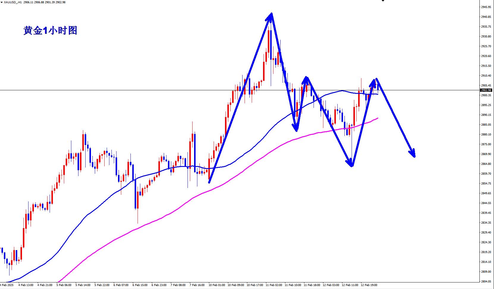 黄金1小时均线开始拐头了,短线黄金多头动能受到一定程度的打击,黄金昨天行情之剧烈,黄金昨天空头先一波下杀,黄金多头强势反抽,现在多空就是这么剧烈,黄金2910依然是黄金多空的关键,黄金早盘承压2910继续先空。