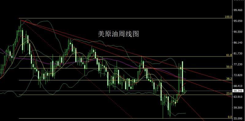 美原油市场上周区间盘整,周初开盘在66.25的位置后行情先回落,周线最低给到了65.23的位置后行情强势拉升,周线最高触及到了68.31的位置后尾盘震荡回落,周线最终收线在了67.14的位置后,周线以一根上影线稍长于下影线的小阳线收线,而这样的形态收尾后今日低开后,67.1空止损67.5下方目标看66.5和66和65.5.