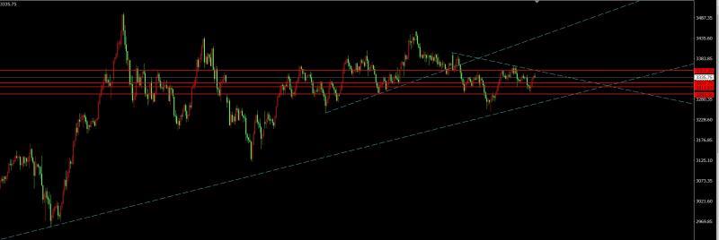 对于今天盘面来看,日图单下影较长阳线,短期技术面重复前一波反弹行情,形态上暂时对于下跌放缓企稳,后市还有望进一步反弹,而日图仍然压制于中轨这里,后市多头想走的更远必须突破3355并四小时收于上方,在没突破之前以宽幅对待,四小时刺破下线后反弹,目前离上线也不远,形态上反弹没有结束,短期均线受阻,下方支撑重点上移到了小时图下线3307附近,不过早盘拉高回落按最近的运行规律,不管是跌还是涨修正基本按25块计算,也就是上涨回落25,下跌也一亲,中间位一般也是炮灰,同时3320附近又是30分钟底线,所以今天整体可以看作修正后多,短空后接多。