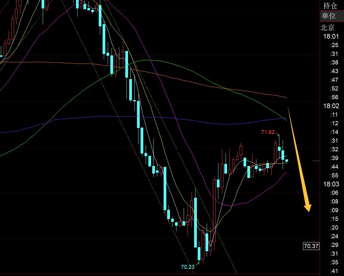 原油方面:日线10均线一线预计会承压,留意71.9下压制看回落;或者有效失守小时线中轨后,反弹确认看回落,支撑70.6、70.2;
