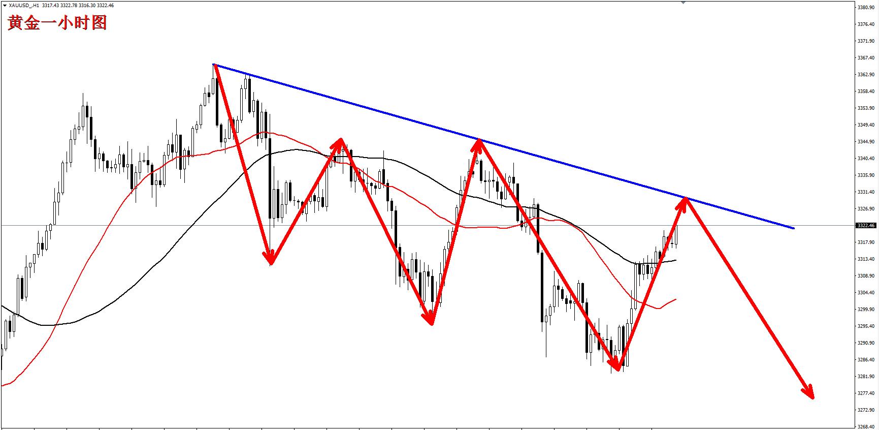 早盘金价还在反弹的过程当中,我们不要急于放空,早盘我们主要是关注上方趋势线压力位3330附近,但日内也要谨防黄金进一步上破,那下一步则是要关注短期的多空分水岭3345一线,日内只要黄金保持在3345之下,反弹继续看空,早盘反弹到达3330可以先空!