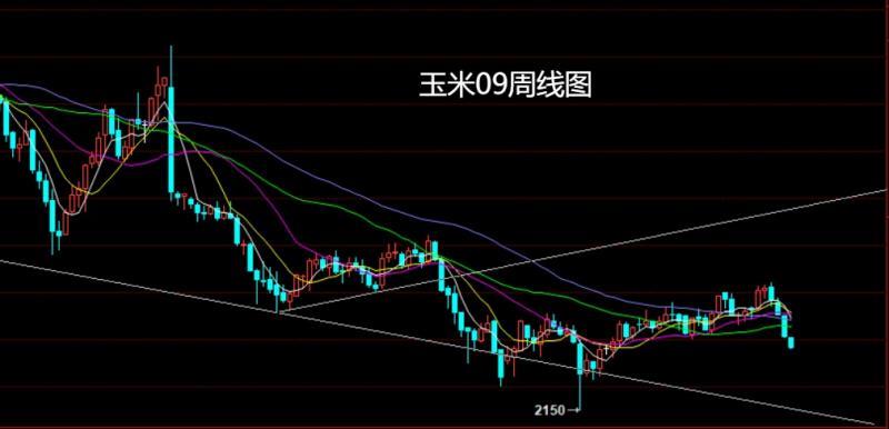 玉米09市场上周小幅低开在2352的位置后行情直接回落,周线最低给到了2280的位置后行情整理,周线最终收线在了2283的位置后行情以一根下影线稍长的光头大阴线收线,而这样的形态收尾后,本周2300的空止损2320,下方目标看2280和2260和2245.