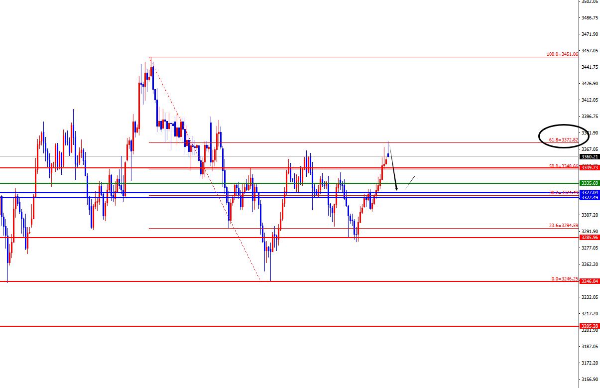 黄金3370区域空,防守10美金,目标3350-3335-3327-3322
