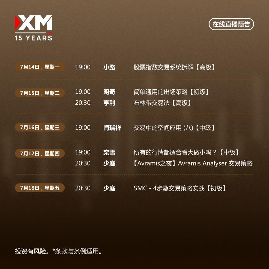 以上内容就是关于“【XM外汇】:中文在线直播讲座 本周预告”的全部内容,是由XM外汇小编认真整理编辑的,希望对你的交易有所帮助!感谢支持!