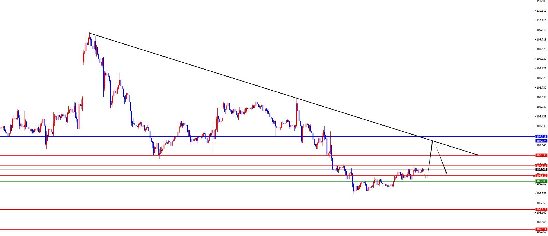 美指106.80-90区间多,防守5美金,目标107.30-107.60