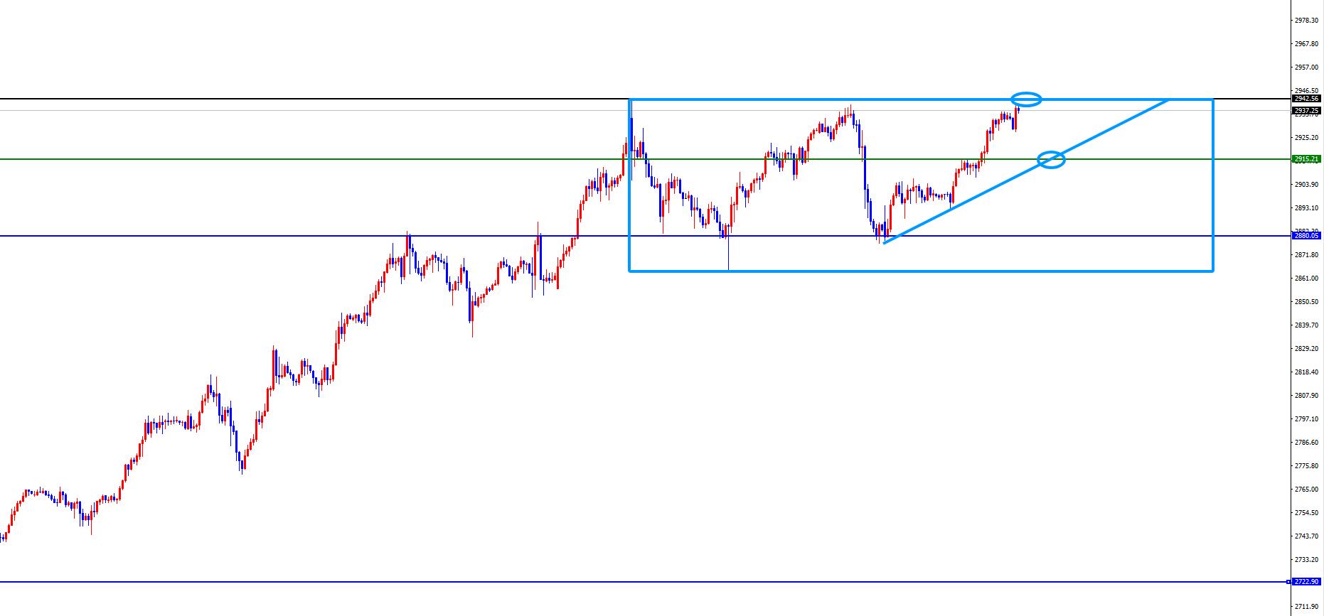 黄金整体2864-2942.5区间,短线区间于2942.5-2915破位后才会延续